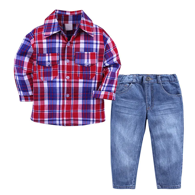 Good Chance of 2018 Boys Clothes Fashion Kids Outfit Long Sleeve Plaid Shirt Jeans 2Pcs Suit For Baby Boys Autumn