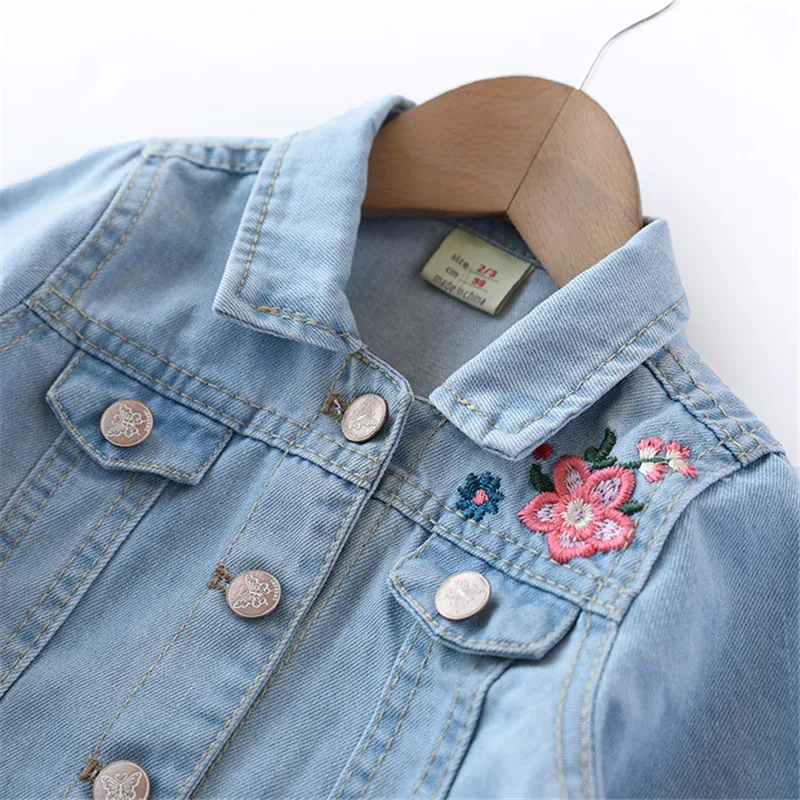 Cheap Offer for Baby Girls Denim Coats Vintage Jeans Jackets for Girl Toddler Denim Jackets Infant Jean Rose Flower
