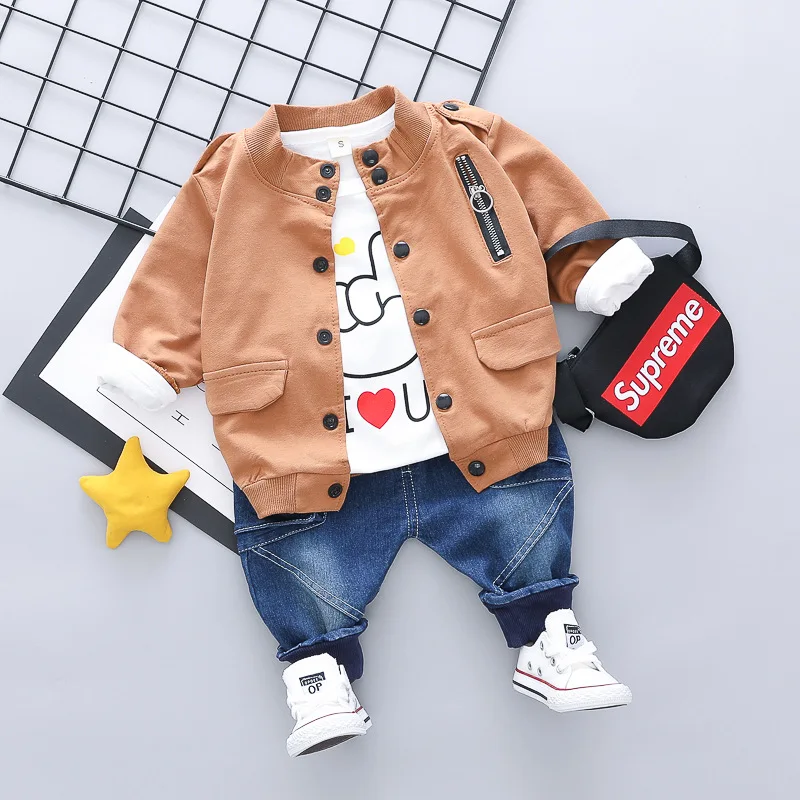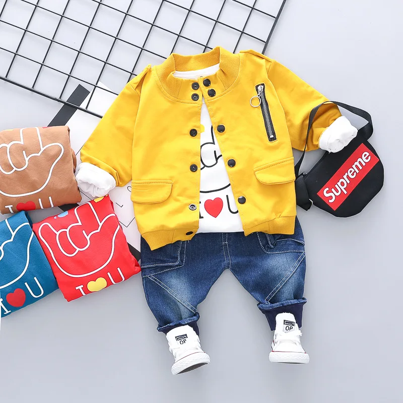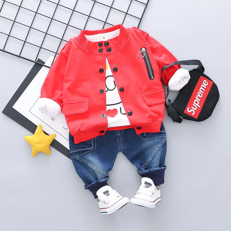 Best Chance of Boys Spring Clothing Baseball Uniform Jeans Three-piece Children's Clothing 0-4 Years Old Baby Boy