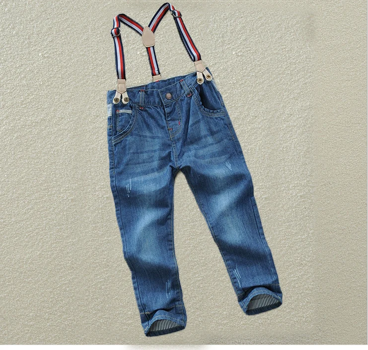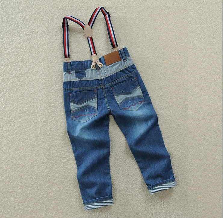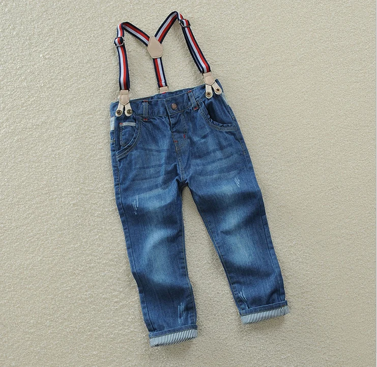 Best Price of Fashion Jeans Long trousers With Straps for Baby boys Toddler Flanged 100% Cotton Denim Pants Blue