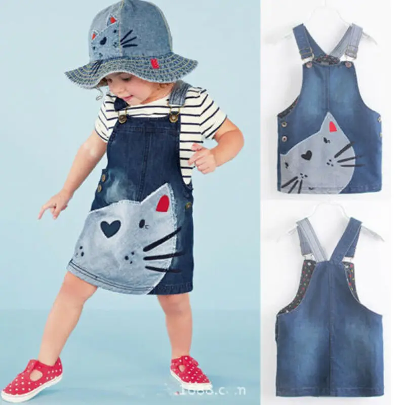 Buy Girl Cowboy Suspender Dresses Girls Denim Strap Dress Cat Print Jean Sundress Kids Girls Casual Jum Right Here and Right Now Just for USD US $4.12, Price will be rise up at any time without notification and I cant guaranted that the stock is still available tommorow or next hour. So Please Save It Now!