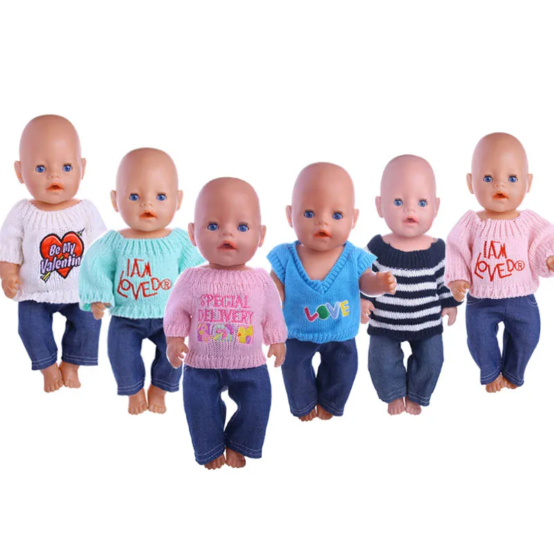 Cheap Offer of Luckydoll Color Knit Doll Clothes + Jeans Fit 18 Inch American 43cm Baby Doll Clothes Accessories T